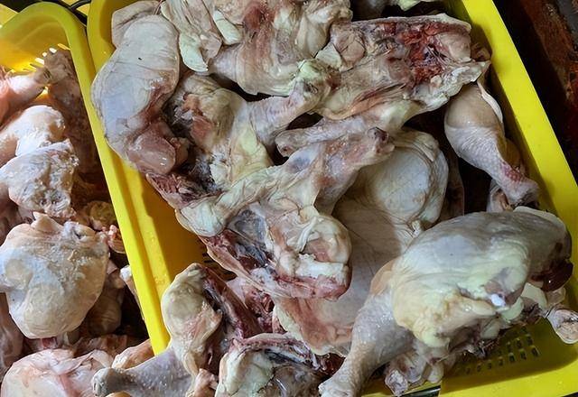 后厨地面上全是水,到处都是。检查发现给孩子们准备的肉并非新鲜肉,全是一袋袋的冻肉。有人当场撕开一袋,瞬间传出难闻的味道。肉类颜色也不正常,呈现出黑色。